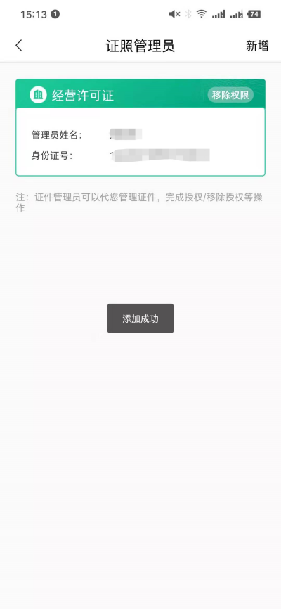 点击证照管理员,可以查看和新增对应证照管理员。