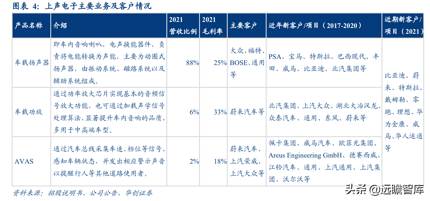 公司为传统知名车企、电声品牌商核心供应商,近年开拓新客户,有望在未来5年持续贡献增量业绩。