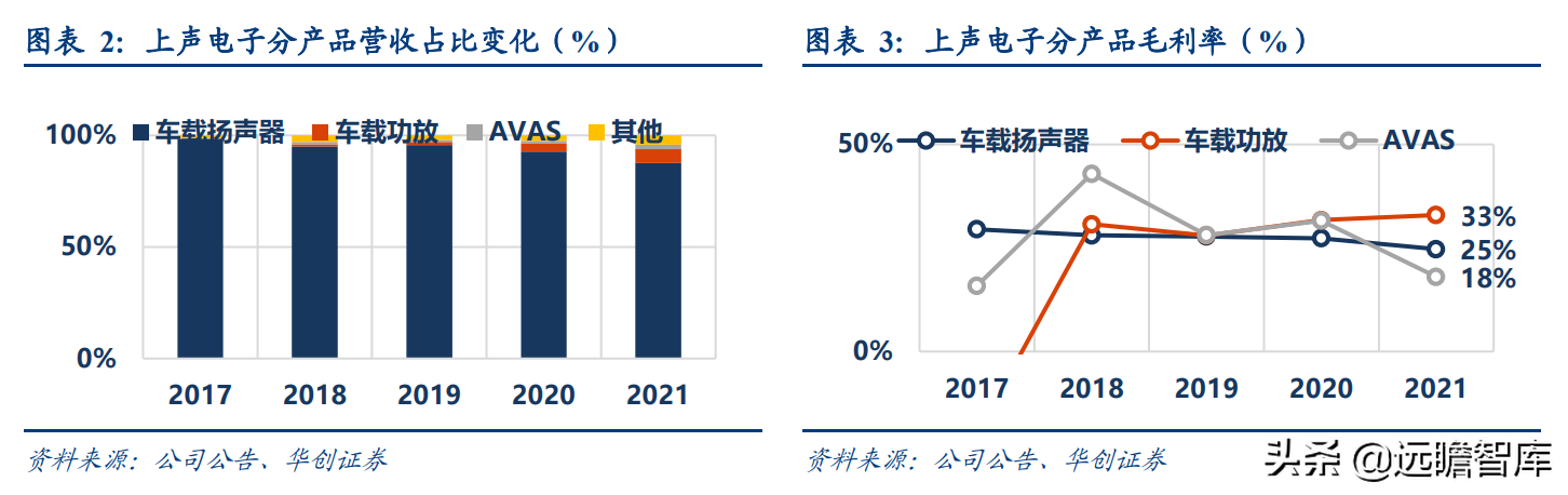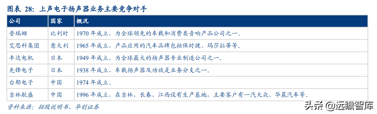 国内竞争对手如航盛电子、德赛西威均为国内汽车电子领先企业,但声学系统业务仅为它们的其中一个业务分支,上声作为专业选手具备更精细的研发、制造、供应能力。
