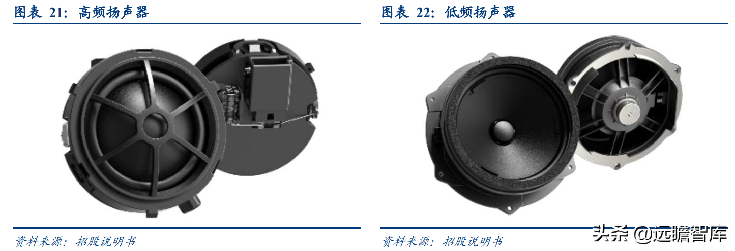 1) 汽车行驶环境的复杂性要求车载扬声器在抗振动、抗冲击、防潮等方面具有良好的适应性,公司掌握纸盆、盆架等核心零部件的生产工艺,对材料、工艺的基础研究研发理解深刻,独特生产配方构筑原材料制造壁垒,从而保证产品品质。