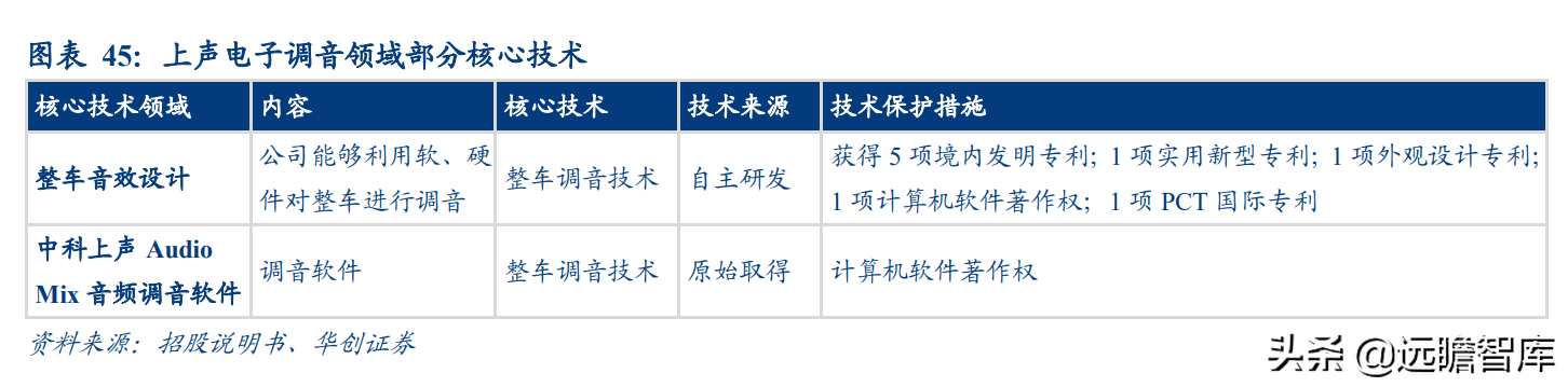 公司在整车音效设计领域拥有多项专利,能够利用软、硬件对整车进行调音,中科上声 Audio Mix 音频调音软件拥有计算机软件著作权,正处于不断开发与完善阶段。另外,公司拥有自己的调音工程师团队,并为其提供培训支持。
