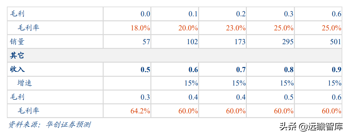 3) AVAS: 声学系统新定点及部分散单带动 AVAS 放量,预计 2022-2025 年销量 102 万、173 万、295 万、501 万只,收入从 2021 年 0.26 亿元增加至 2025 年 2.33 亿元,毛利率随稀土等原材料价格企稳,预计将逐步回升至 25%水平。