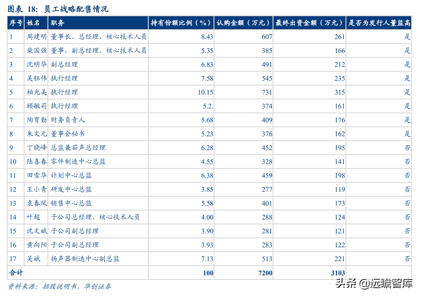 上声投资及持有其 11.3%份额的上声咨询均为上声电子员工持股平台,另外,17 名高管及核心员工额外通过科创板战略配售合计持有公司2.5%股份。员工与公司利益深度绑定,有利于充分激发工作积极性。