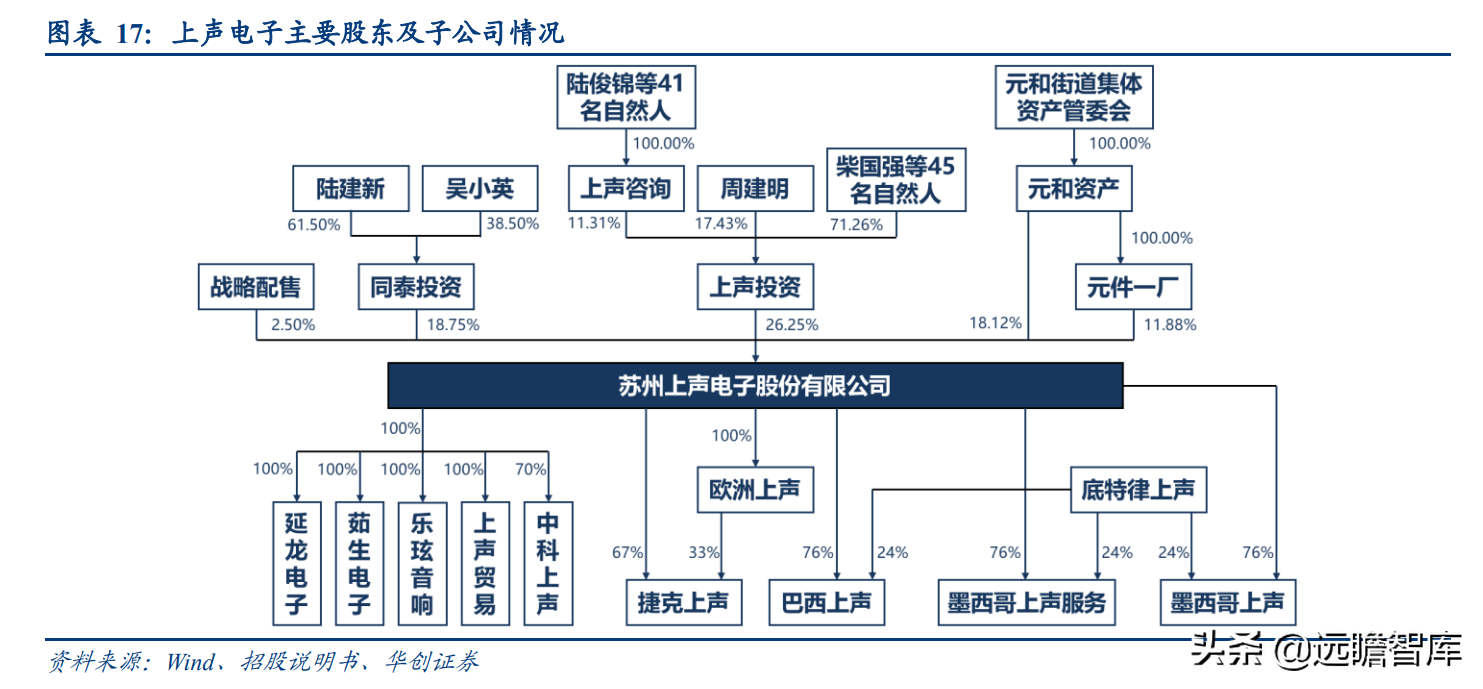 截至2021年末,上声投资、同泰投资、元和资产和元件一厂的持股比例分别为 26.3%、18.8%、18.1%、11.9%。其中上声投资为员工持股平台,苏州元和街道实际控制元和资产与元件一厂,合计持有公司 30%股份,为第一大股东,但不参与日常经营管理。