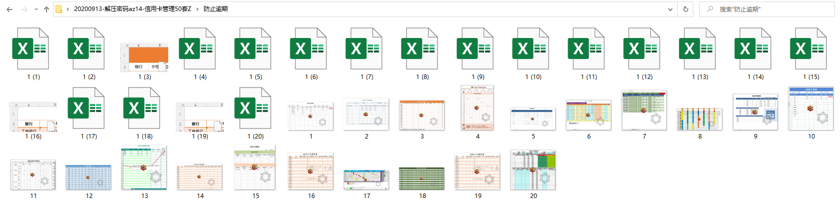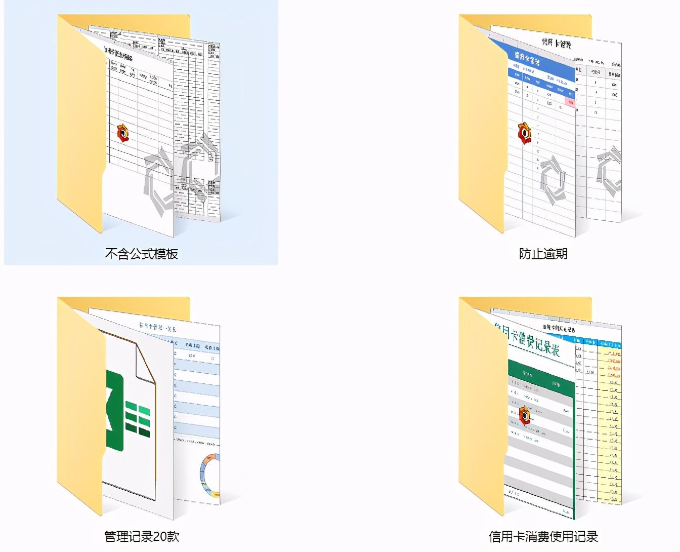 メ包含无公式应用表格,防止逾期表格,记录管理表格,消费记录表格。メ