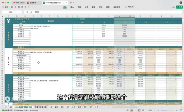 剩下的2-12月的整体的情况和1月份是相通的,所以当每个月每日把所有的支出明细和收入明细全部更新完成了以后,就可以在年度分析收支表中看到整体的年度金额的收支情况,然后去做一下整体的年度总结。这样子下来就会对自己整体的年度的收支水平有一个清晰的了解,然后去做一个初步的存款计划。