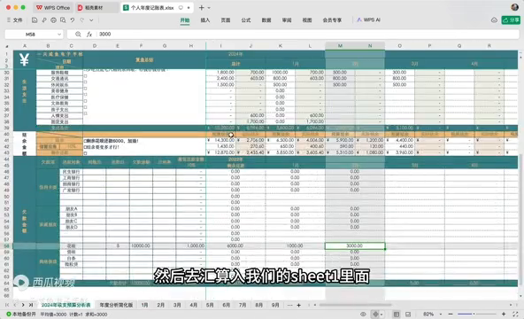 实际上sheet2是不需要自己手动去填写的,手动需要填写的也就只有年度总结这一块。就当一年12个月份过完了以后看一下整体这一年的收入和支出占比,然后去做一个总结,去复盘一下这一年度到底是哪里超支,哪一部分在次年的时候可以把收入提上来。