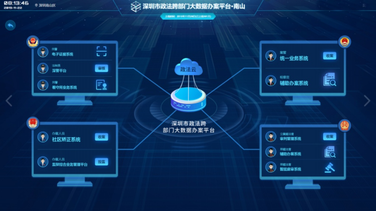据介绍,该大数据办案平台主要以“办案材料全电子、办案信息全共享、办案流程全监督、办案业务全覆盖”为目标,搭建起一个以政法系统跨部门网上办案平台为中心、公检法司业务系统为子平台的一体化运行架构,以电子卷宗为载体,推动刑事案件全流程网上流转和办理。该项改革最早在深圳南山区试点,形成经验后在深圳全市推广。