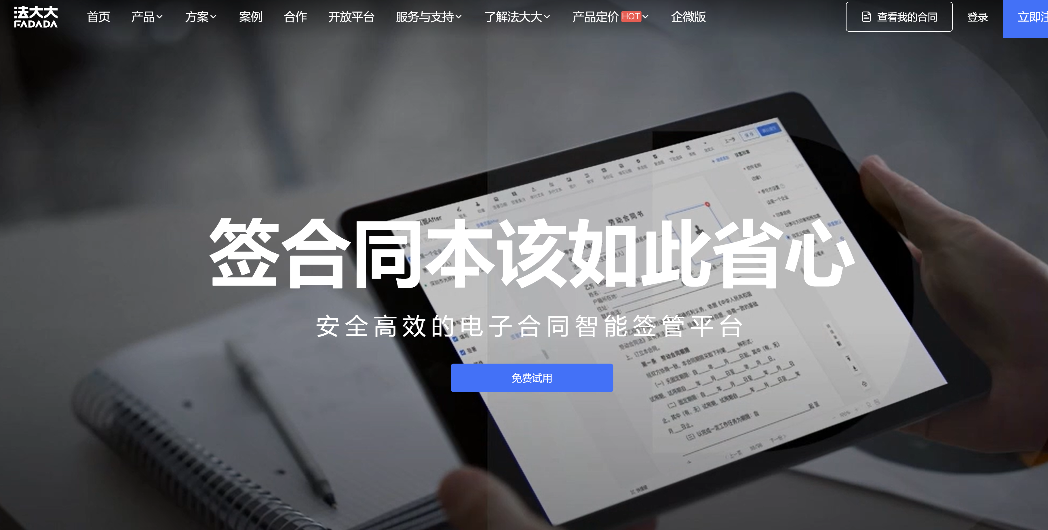 适合行业/规模 :法大大服务适用于各种规模和类型的企业,从小型企业到大型企业,尤其是金融、房地产和互联网行业。