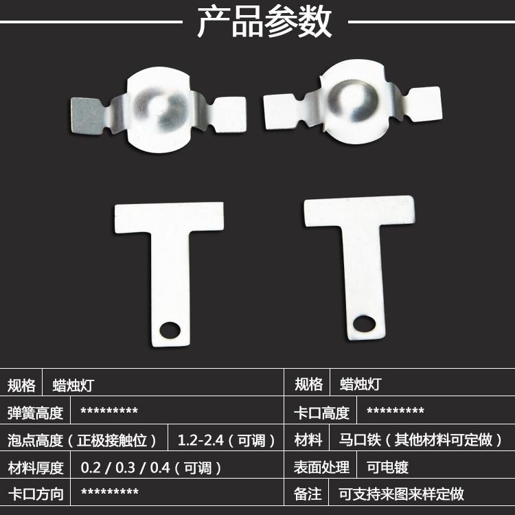 弹簧片的制造资料一般来说应具有高的弹性极限、疲劳极限、冲击韧性及良好的热处理性能等,常用的有碳素弹片钢、合金弹片钢、不锈钢弹片以及铜合金、镍合金和橡胶等。弹片的制造方法有冷卷法和热卷法。弹片丝直径小于8毫米的一般用冷卷法,大于8毫米的用热卷法。有些弹片在制成后还要进行强压或喷丸处理,可提高弹片的承载能力。