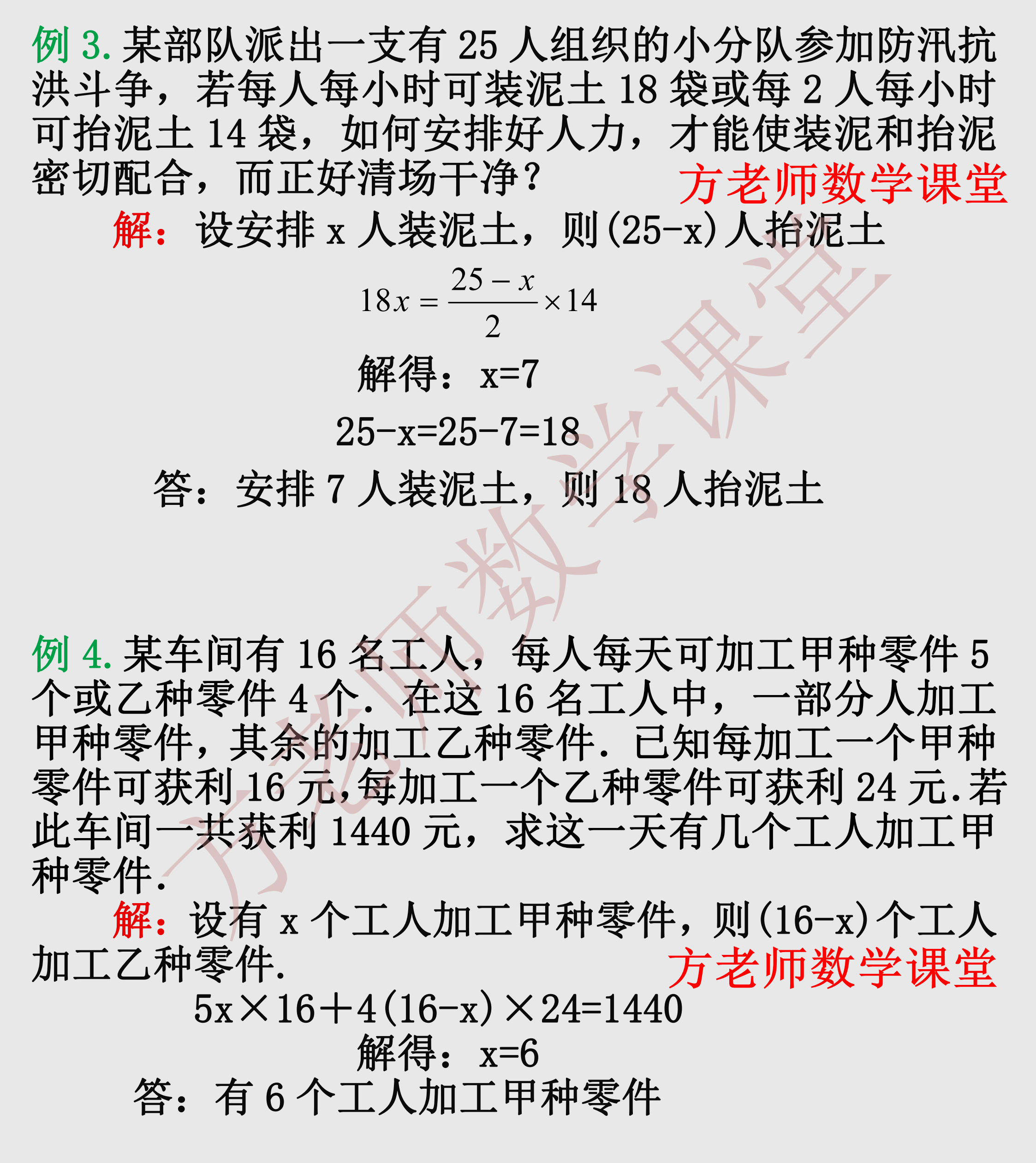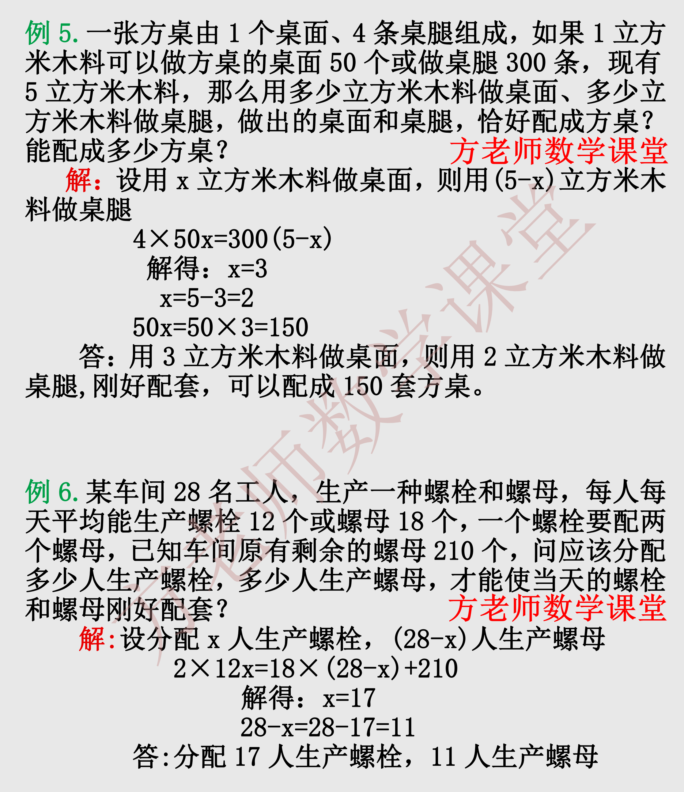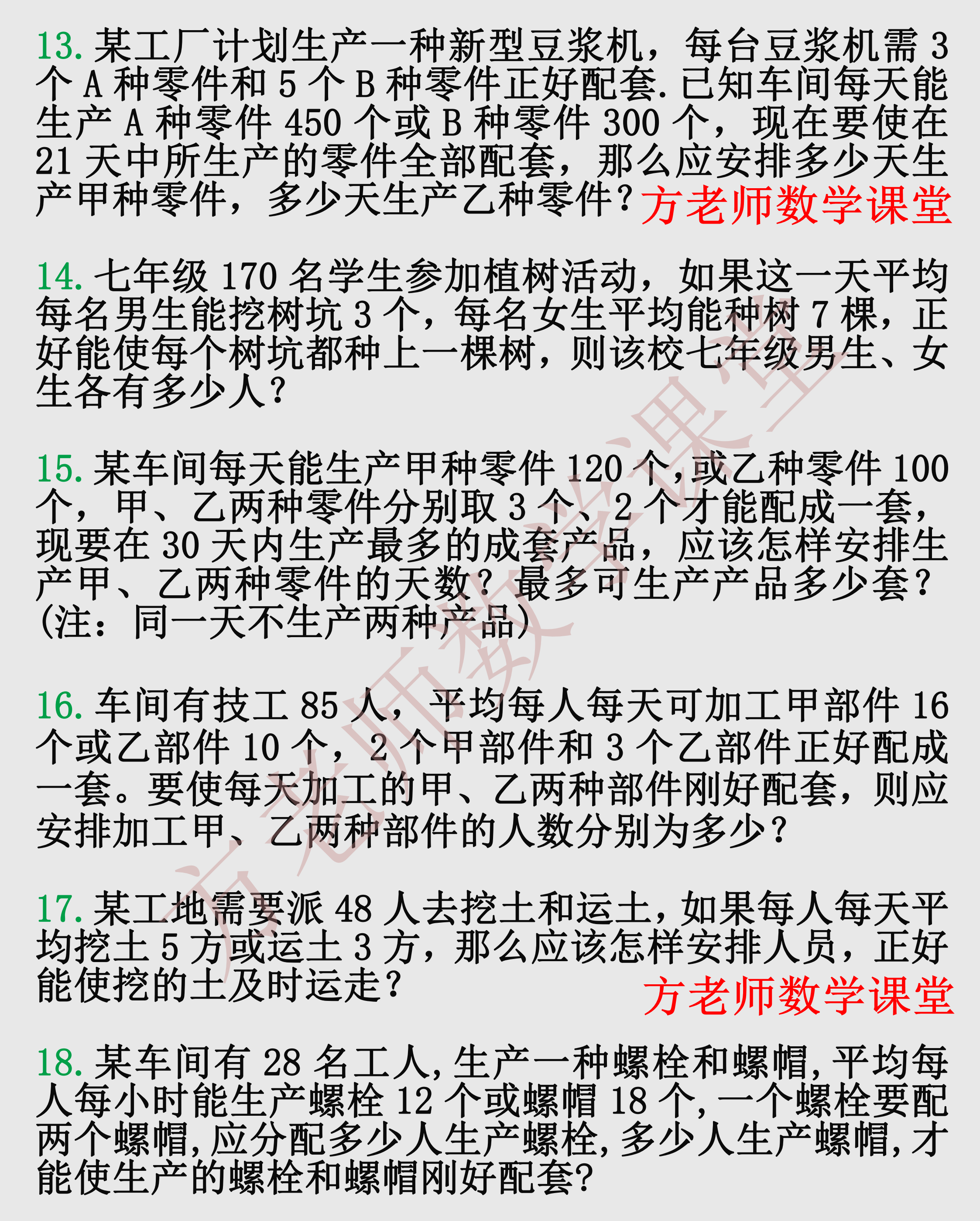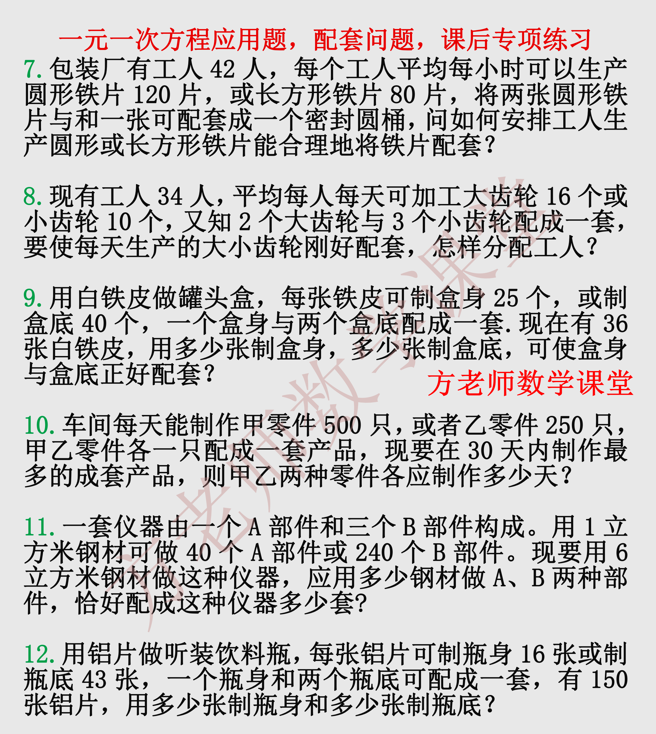 各位亲爱的朋友,一元一次方程应用题,配套问题的专项训练,千呼万唤始出来,让各位久等了。