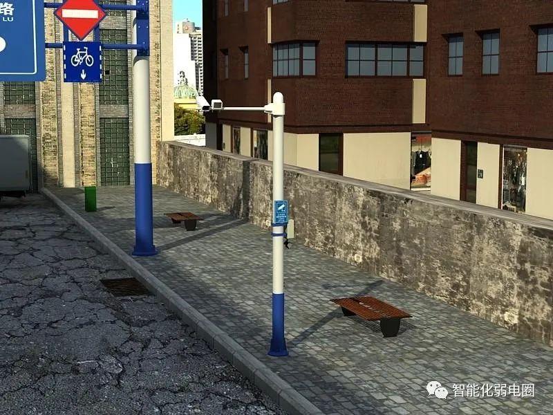 室外摄像机不仅能够有宽阔的视野和俯瞰效果,而且图像稳定,不产生机械抖动。监控杆件分为不同规格,根据现场环境设置不同高度的杆件。监控摄像点安装在十字路口或道路边时,需考虑到道路行车安全。在杆件上配置抱杆箱以便于网络等设备安装。立杆的设计安装目标除考虑日晒雨淋抗腐蚀性外,还考虑了减少迎风面积和抗震抖动因素,显示画面不会抖动。