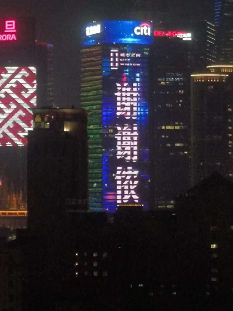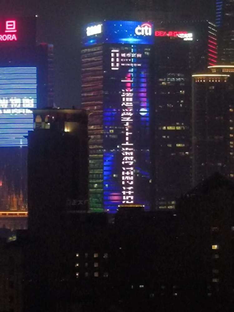 1月10日晚上,花旗大厦LED巨幅大屏“谢谢侬”