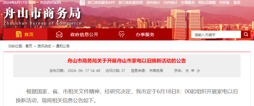 *首期活动于2024年6月18日8:00启动,后期活动将结合舟山市“以旧换新”实施细则开展。*若补贴资金额度提前使用完毕,则活动结束。