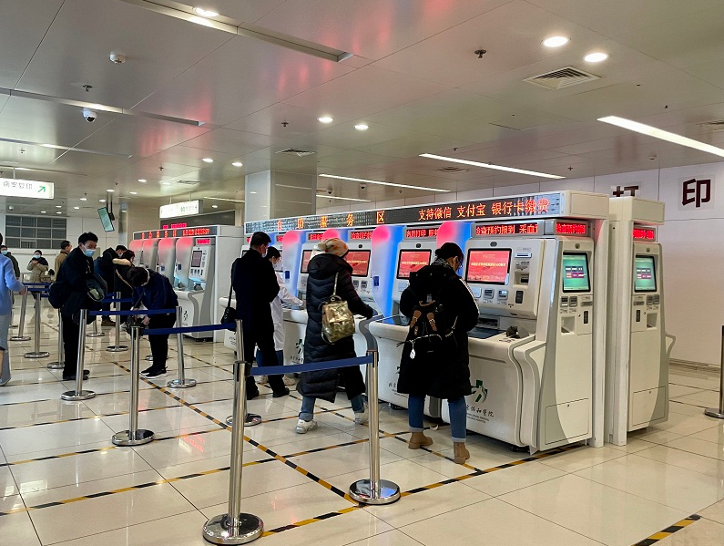 在北京协和医院自助服务区,患者可以在机器上自行打印电子病历
