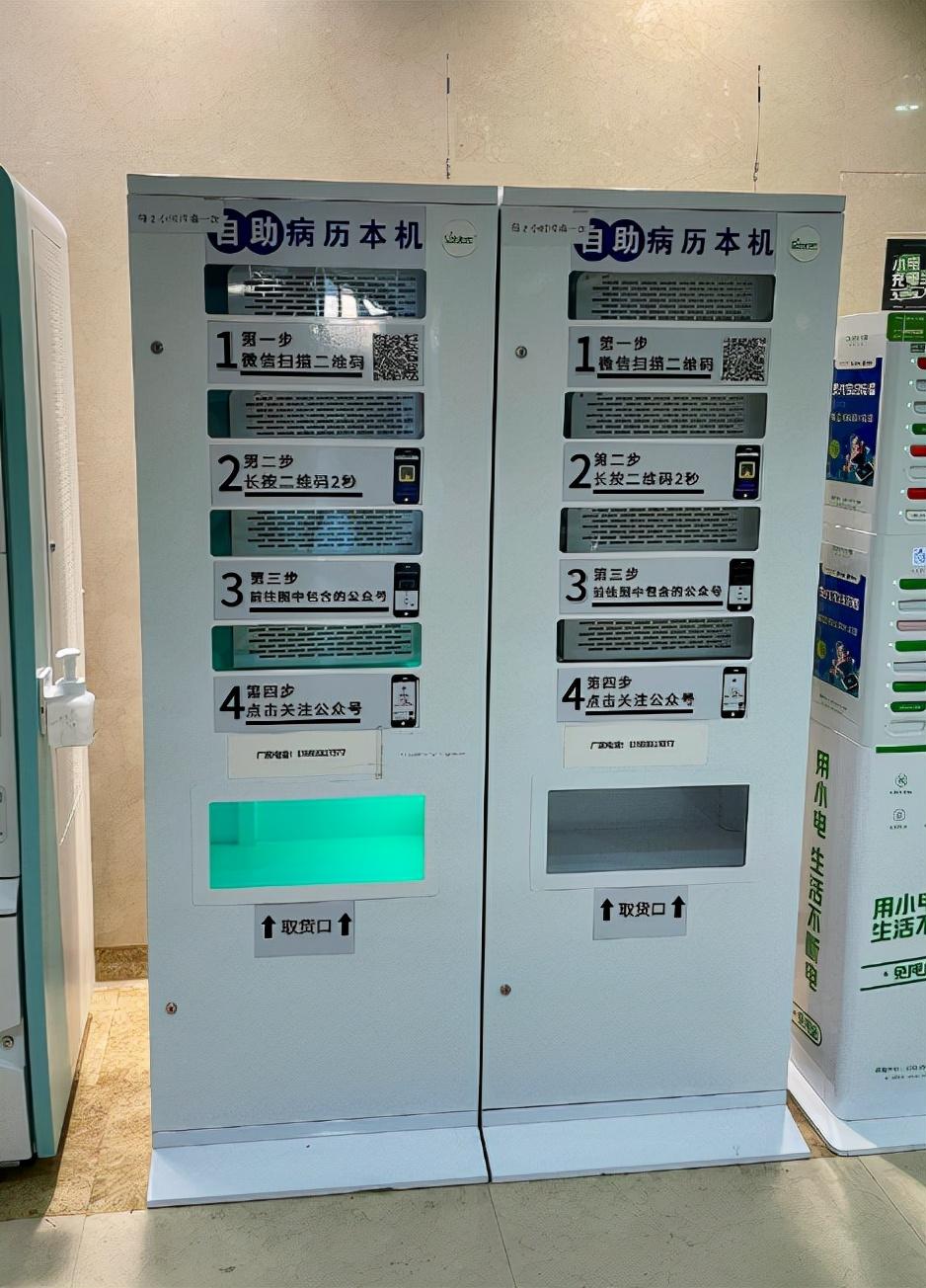 一些医院仍在沿用纸质病历,大厅设有自助病历本机