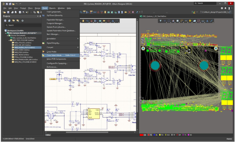 Altium Designer提供了很大的灵活性,并允许您快速将元件放置在电路板上。您可以自动排列组件,也可以手动放置它们。您还可以将这些选项一起使用,从而可以利用自动放置的速度,并确保按照良好的组件放置准则对电路板进行布局。最新版本的Altium Designer的一项附加高级功能是能够将组件成组排列。您可以在PCB布局中定义这些组,也可以使用“交叉选择模式”在原理图上定义组,该模式可从“工具”菜单访问。