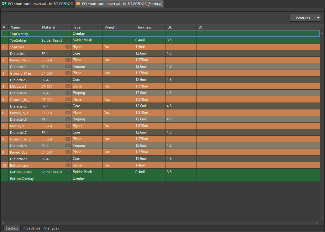 如果您不熟悉印刷电路设计领域,尽管可以在Altium Designer中定义任意数量的层,但是大多数现代PCB设计概念都将从FR4上的4层板开始。您还可以利用材料堆叠库;这使您可以从印刷电路板的各种层压板和独特材料中进行选择。