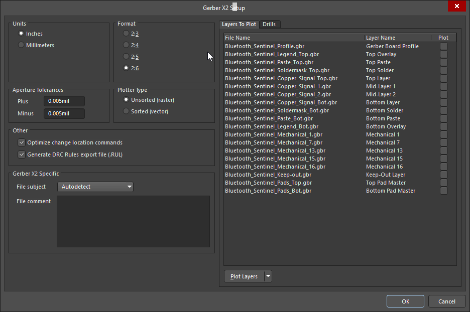 电路板通过最终DRC后,您需要为制造商生成设计文件。设计文件应包括构建电路板所需的所有信息和数据;包括任何注释或特殊要求,以确保您的制造商清楚您的要求。对于大多数制造商来说,您将可以使用如下所示的Gerber文件集 ;但是,某些制造商更喜欢其他CAD文件格式。