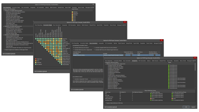 如果已经确定了电路板的印刷电路板形状,尺寸和叠层,则可以立即进行设置。如果您现在不想执行这些任务,请不要担心,您可以在以后更改电路板的形状,尺寸和层堆叠(请参阅下面的步骤4)。通过编译SchDoc,原理图信息可用于PcbDoc。编译过程包括验证设计并生成几个项目文档,使您可以在转移到PcbDoc之前检查并更正设计,如下所示。强烈建议您此时检查并更新用于创建PcbDoc信息的项目选项。