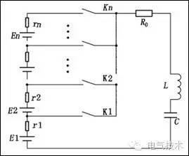 在直流斩波、恒压充电和台阶式充电等充电方式中,海军工程大学提出了图8所示的台阶升压式充电方式,用于实现电池对脉冲电容器的快速充电。台阶升压式充电结构简单,具有近似恒流的输出特性,且开关频率低、损耗小。