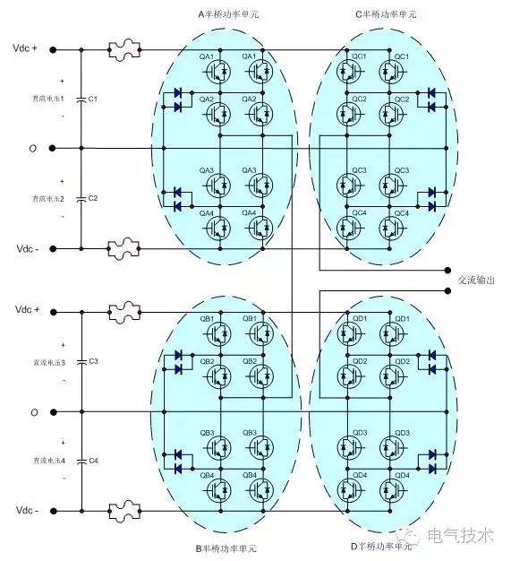 脉冲式逆变装置的单台容量达几十MV·A,输出电压达几千伏、输出电流高达上万安培,如何在现有开关器件功率等级、拓扑及控制方法的条件下,突破高压多电平逆变器的关键技术具有极高的挑战性[17,18]。