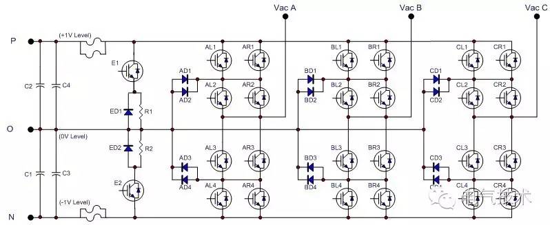 1二极管钳位式三电平半桥单元采用IGBT并联技术,增加了开关器件的功率冗余性,降低了工作损耗;