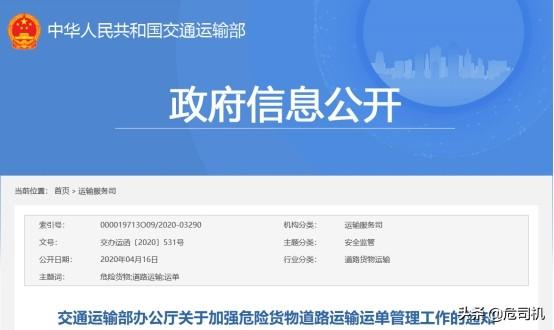 为加强危险货物道路运输安全监管,保障道路交通安全。国家交通运输部曾出台《危险货物道路运输安全管理办法》及《关于加强危险货物道路运输运单管理工作的通知》。其中提出要加强危险货物运输车辆管理,加快建设省级运单监管子系统。
