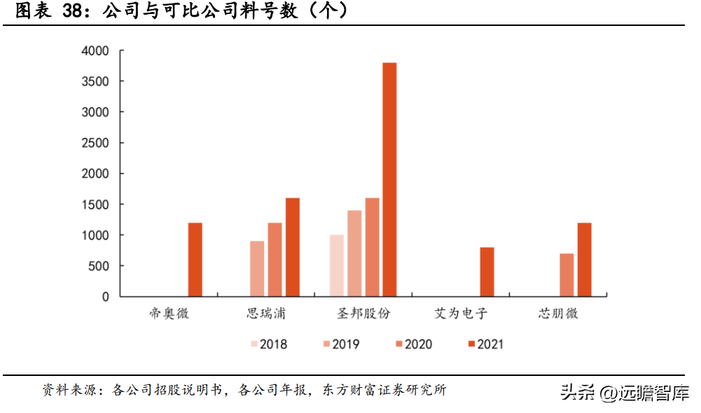 截至招股说明书发布,公司模拟芯片产品型号已达 1200 余款,产生收入的产品型号共计 400 余款,主要覆盖领域为消费电子和智能 LED 照明,2021 年度销量超过 10 亿颗。对比同行业可比公司,公司的料号数处于行业平均水平。国内模拟芯片龙头厂商圣邦股份上市之后,借助并购实现了料号的翻倍增长。