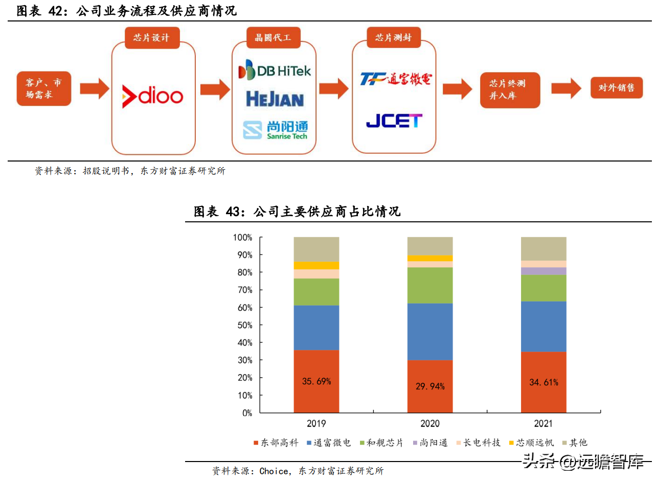在公司的供应商体系中,东部高科是公司最主要的供应商。2021 年,公司向东部高科采购晶圆的金额占比达 34.6%,相比 2019 年占比略有下降。