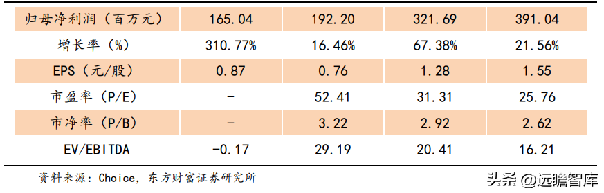 预计公司 2022/2023/2024 年每股收益分别为 0.76/1.28/1.55,对应 PE 分别为 52/31/26 倍。未来我们看好公司多赛道的增长,将拉动公司业绩提升,基于 2023 年给予 44 倍 PE,12 个月内目标价:56 元。