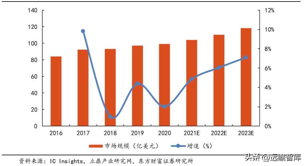 模拟 IC 市场规模平稳增长。 物联网的兴起、5G 和人工智能的发展,以及汽车电动化的趋势均带动了模拟 IC 需求的增长。