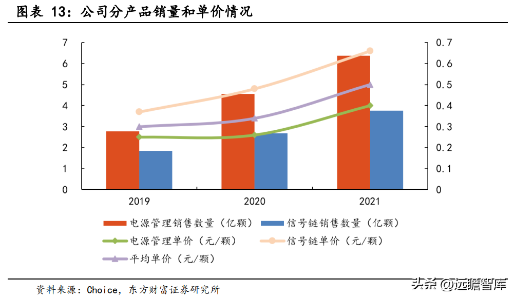 在销售单价和销售数量方面,2019-2021 年,公司电源管理产品和信号链产品均呈现出量价齐升的趋势。2021 年单价上涨幅度较大主要是受到芯片行业产能紧张的影响。受消费行业景气度下行影响,产品单价有下降压力。