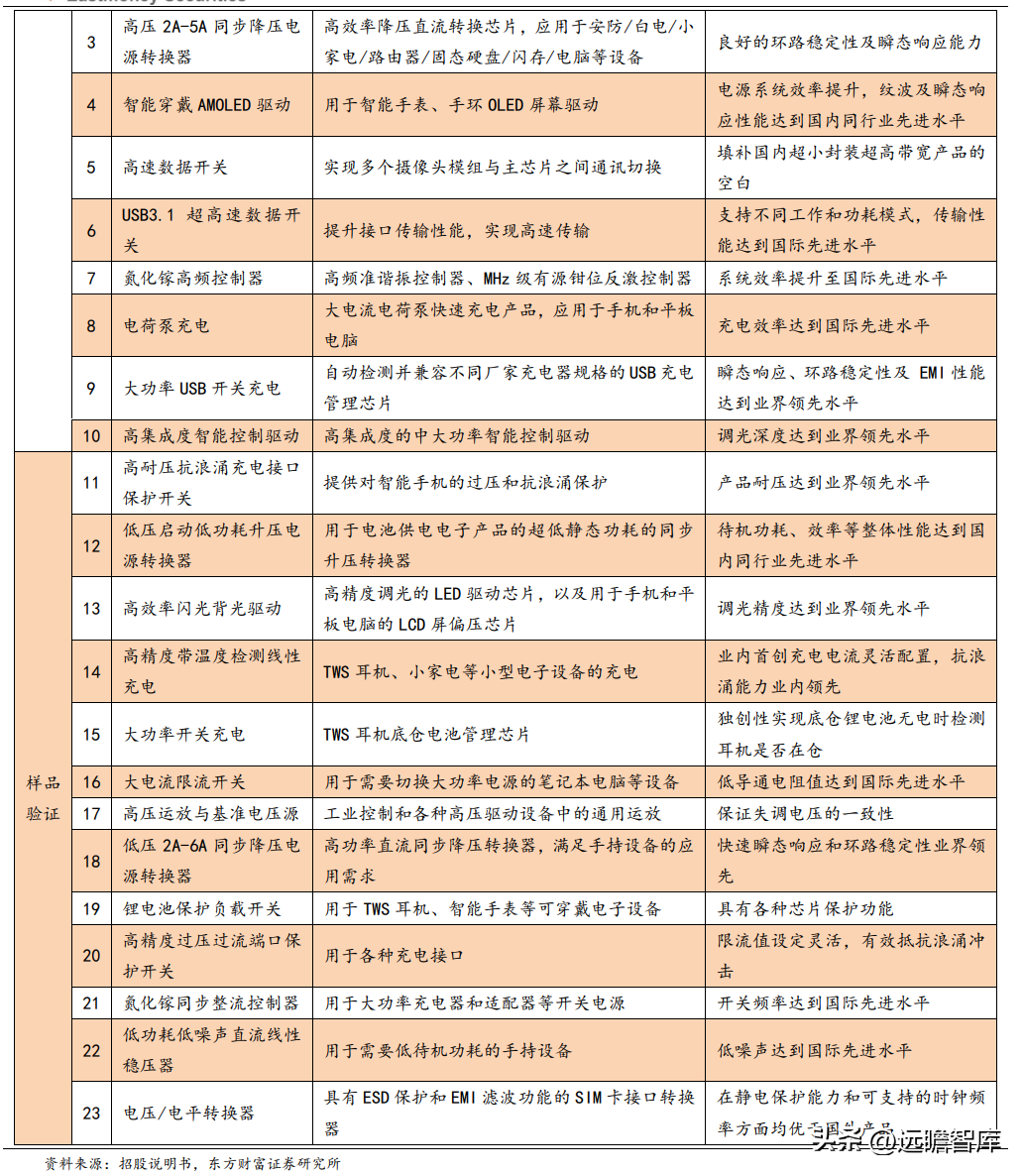 借助产品线的扩充,公司持续拓展下游应用领域。公司产品已应用于消费电子、智能 LED 照明、通讯设备、医疗器械以及工控和安防等领域,并将进一步布局汽车电子领域,推出马达驱动、LED 驱动、运算放大器和模拟芯片等车规产品。广泛的下游应用领域使公司得以避免单一行业景气度下滑带来的不利影响,提升经营稳定性。