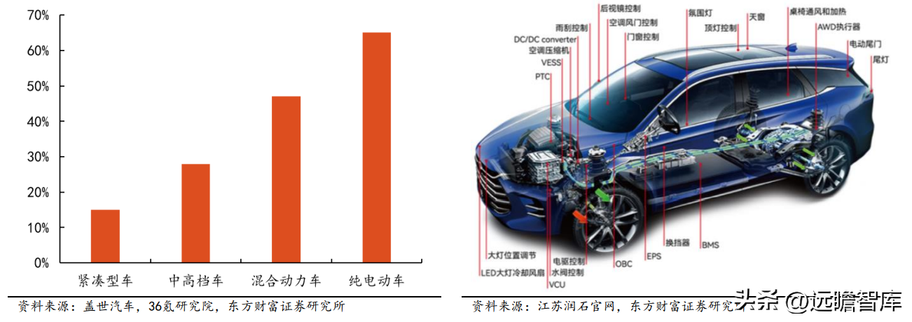 图表 61:中国不同车型汽车中汽车电子成本占比 图表 62:汽车电子在新能源车上的应用