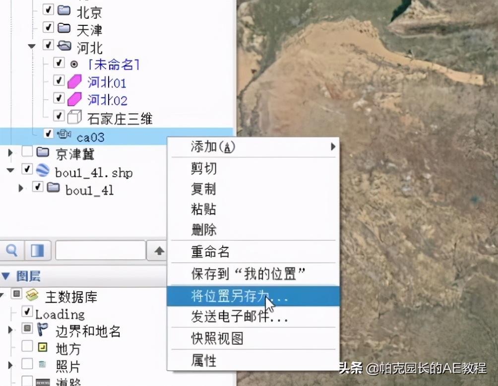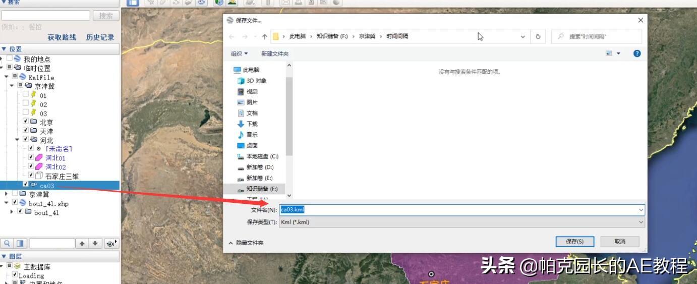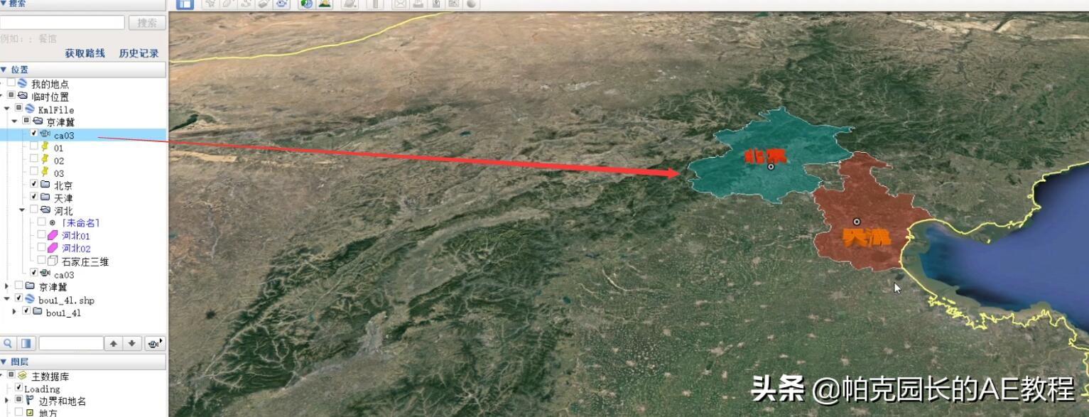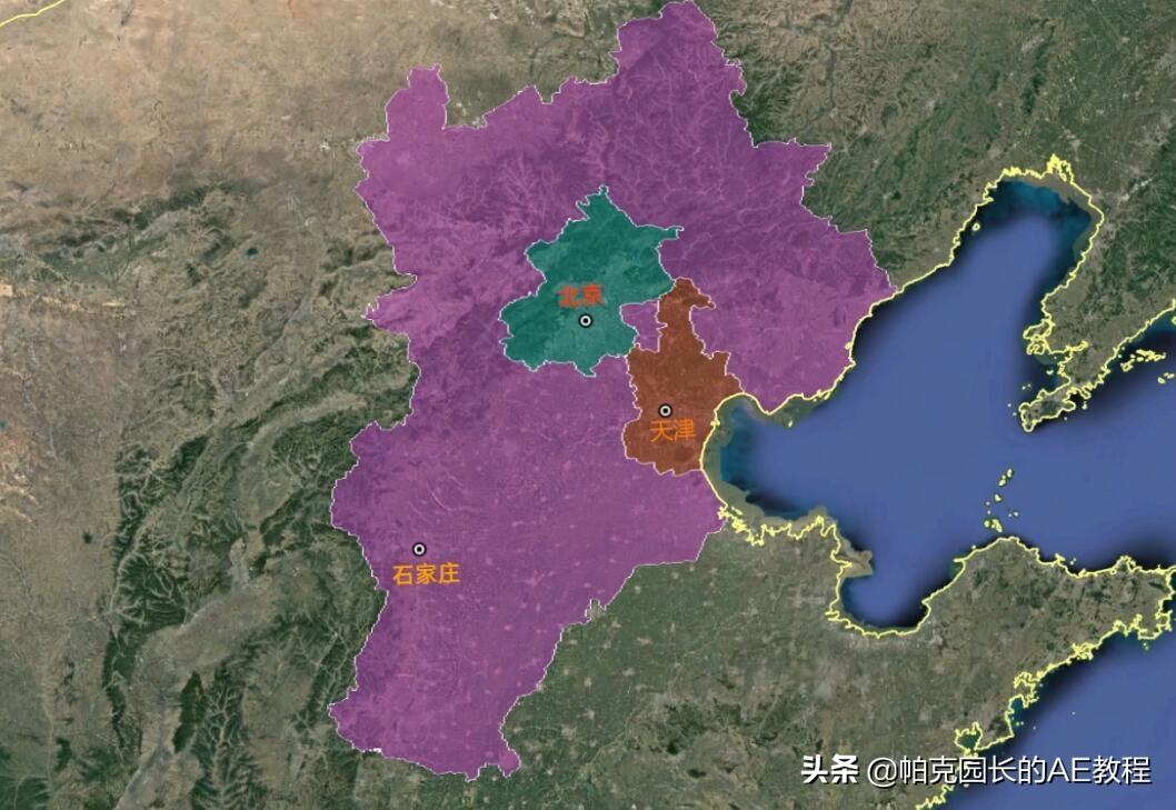 在谷歌地球中,双击新导入的摄像机文件,可以看到京津冀三地的区域显示,可以按时间顺序显示。而不是直接全部把三地的区域显示出来。