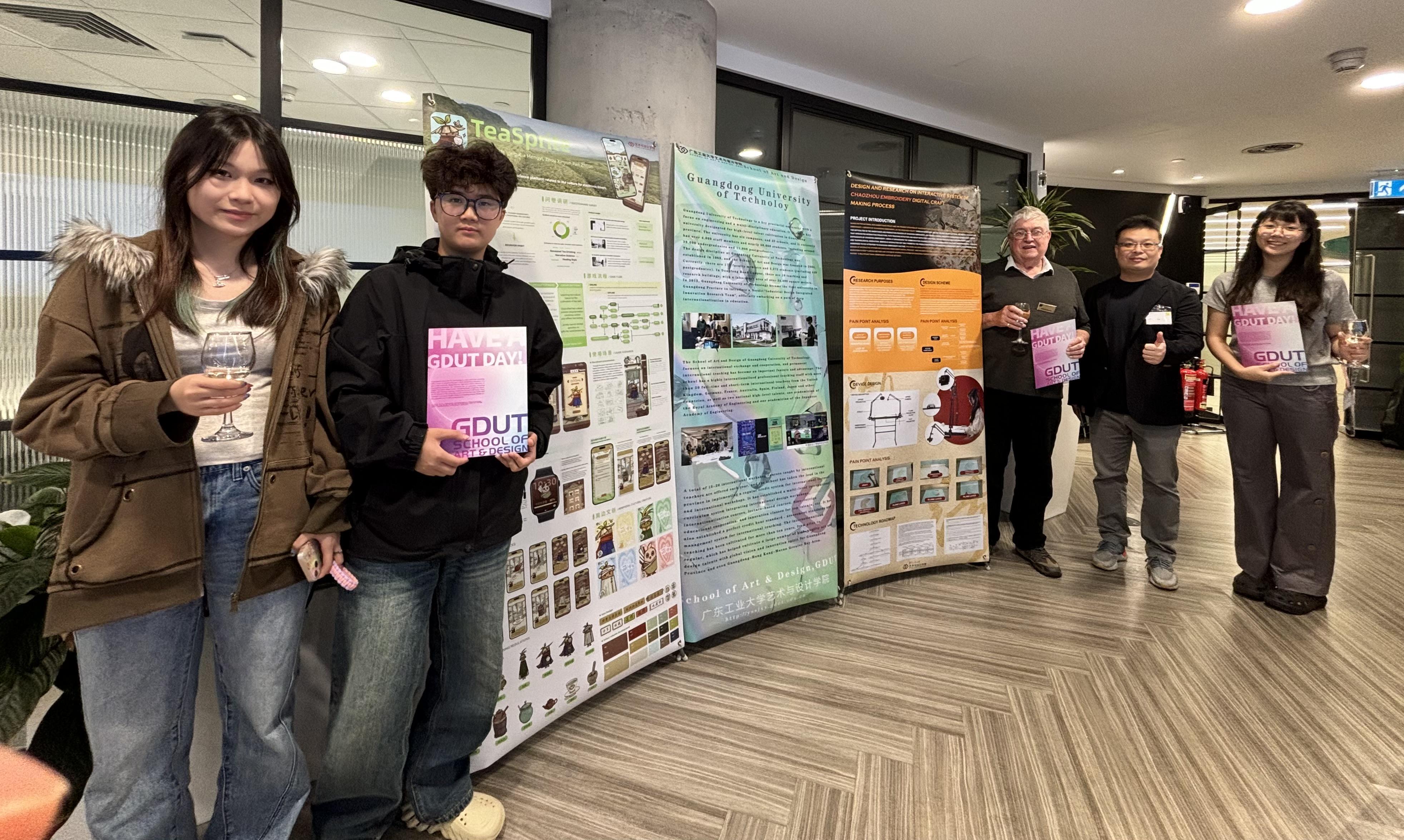 据了解,学院师生的5件设计作品成功入选会议作品展示环节,其中3件为“师生+企业”共创的AIGC设计作品。在会议现场,学生们用流利的英文向参会师生介绍作品背景和设计方案,以及使用AI工具的设计过程,得到了国际专家的高度评价和友好建议。学生们还参观了其他院校的展品,与各国艺术院校的教授们进行了深入交流,拓宽了专业视野。