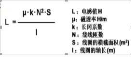 电感值的计算公式如下所示。卷数越多,磁场越强。同时,横截面积变大,或改变磁芯都能够使磁场增强。