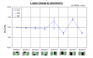 若电感的构造不完全对称,则封装方向上将产生特性差异。因此,为使产品在使用过程中充分发挥其应有的特性,产品上往往标有标记,以表明其方向性。