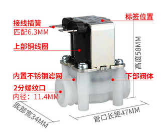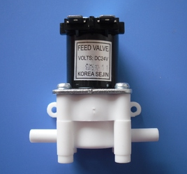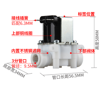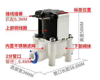 进水电磁阀又名:进水阀、电磁进水阀、水用电磁阀、给水电磁阀、无压防水电磁阀等。它在纯水机中的主要作用是控制水源进水。在工作的时候,进水电磁阀打开,让自来水通过;纯水机停止工作时,进水电磁阀关闭,直接切断水源;进水电磁阀停止工作的表现为废水停止流出。