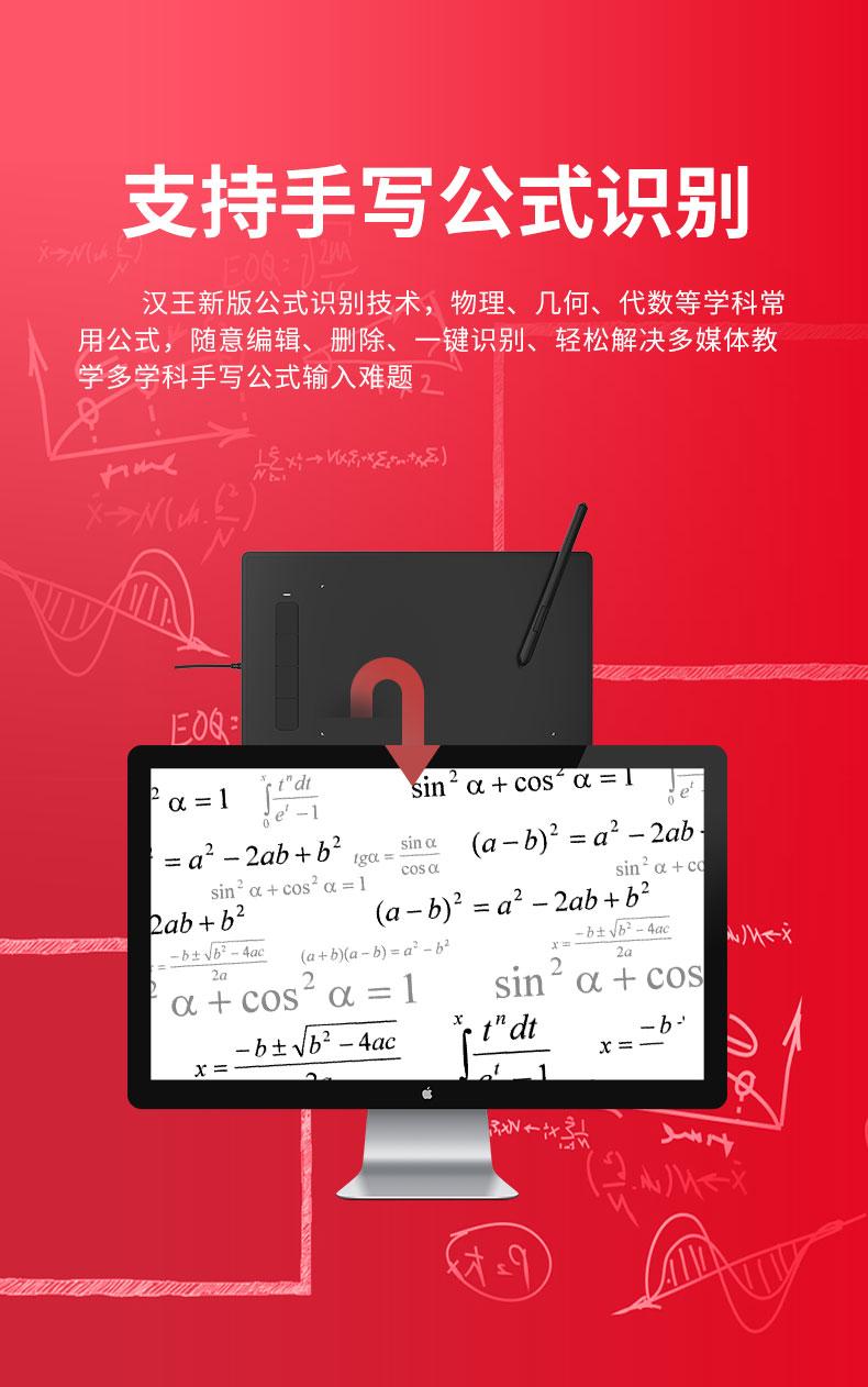 支持手写公式识别。汉王-酷学应用汉王科技新版公式识别技术,物理、几何、数学等学科常用公式手写识别准确性高,随意编辑、删除、一键识别,轻松解决网络教学多学科手写公式的输入难题。