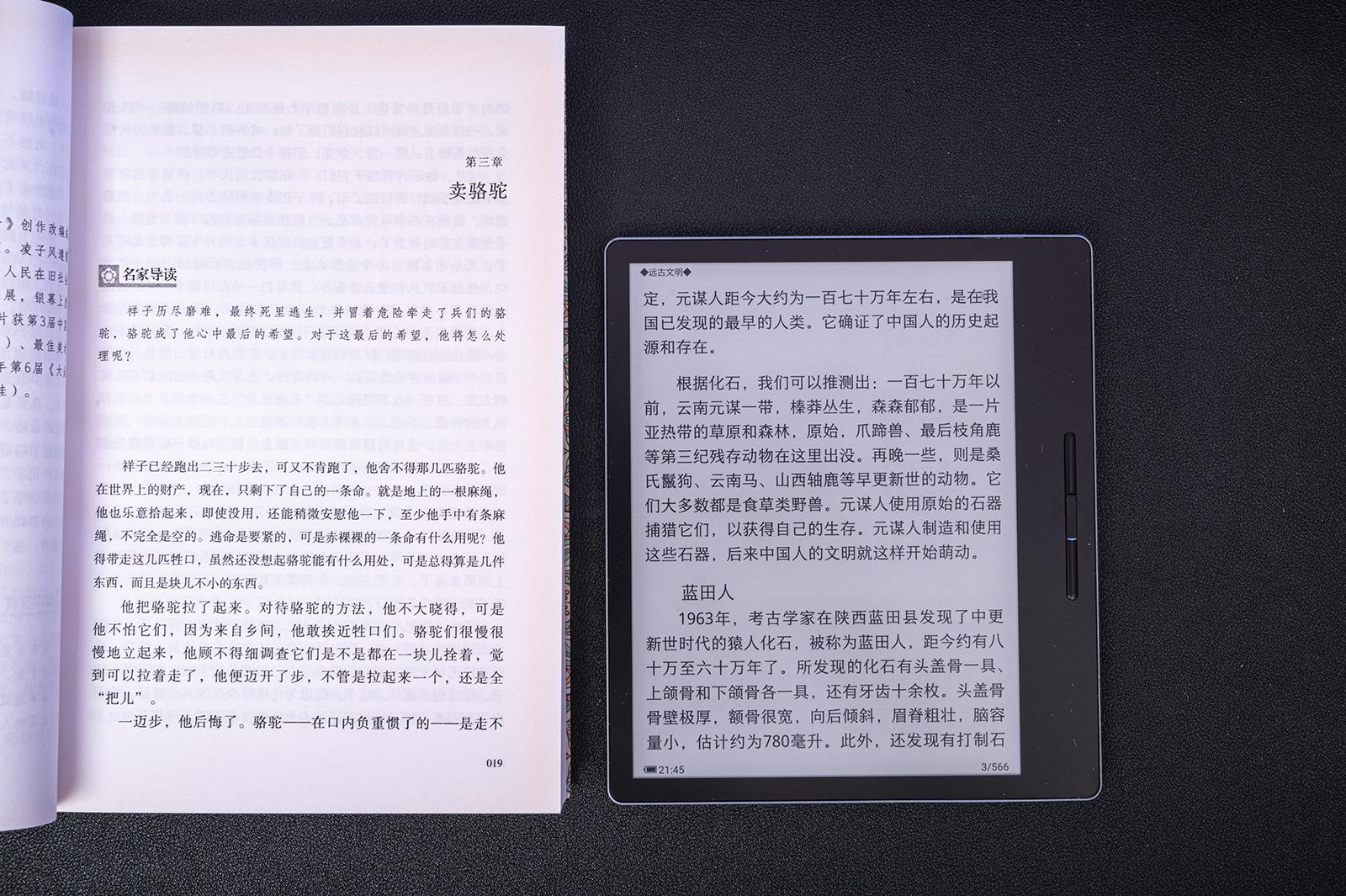 汉王clear采用的是carta 1200墨水屏,实现类纸显示,阅读清晰度高。对比一下,是不是和看实体书差不多呢?