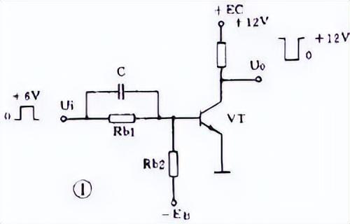 就拿脉冲电路中最常用的反相器电路(下图1)来说,从电路形式上看,它和放大电路中的共发射电路很相似。在放大电路中,基极电阻 R b2 是接到正电源上以取得基极偏压;而这个电路中,为了保证电路可靠地截止, R b2 是接到一个负电源上的,而且 R b1 和 R b2 的数值是按晶体管能可靠地进入饱和区或止区的要求计算出来的。不仅如此,为了使晶体管开关速度更快,在基极上还加有加速电容 C ,在脉前沿产生正向尖脉冲可使晶体管快速进入导通并饱和;在脉冲后沿产生负向尖脉冲使晶体管快速进入截止状态。除了射极输出器是个特例,脉冲电路中的晶体管都是工作在开关状态的,这是一个特点。