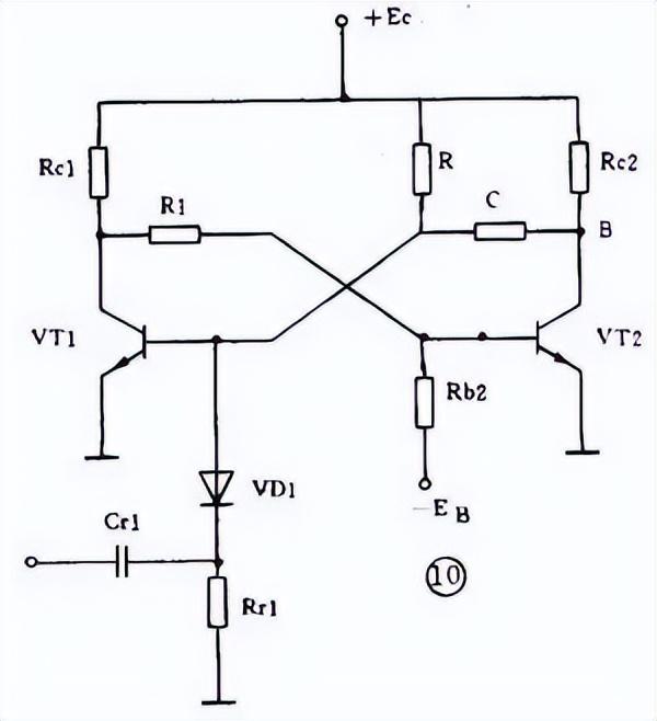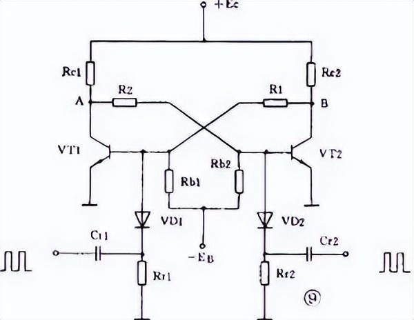 双稳电路的触发电路形式和触发脉冲极性选择比较复杂。从触发方式看,因为有直流触发(电位触发)和交流触发(边沿触发)的分别,所以触发电路形式各有不同。从脉冲极性看,也是随着晶体管极性、触发脉冲加在哪个管子(饱和管还是截止管)上、哪个极上(基极还是集电极)而变化的。在实际应用中,因为微分电路能容易地得到尖脉冲,触发效果较好,所以都用交流触发方式。触发脉冲所加的位置多数是加在饱和管的基极上。所以使用 NPN 管的双稳电路所加的是负脉冲,而 PNP 管双稳电路所加的是正脉冲。