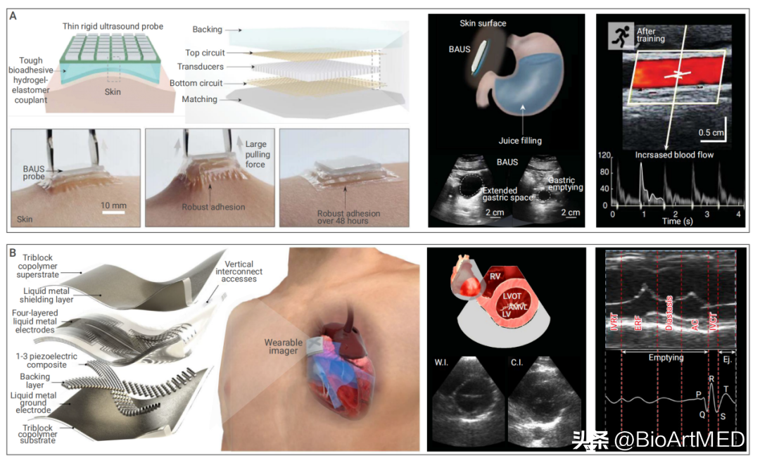 图4. 柔性超声贴片用于超声心动图监测