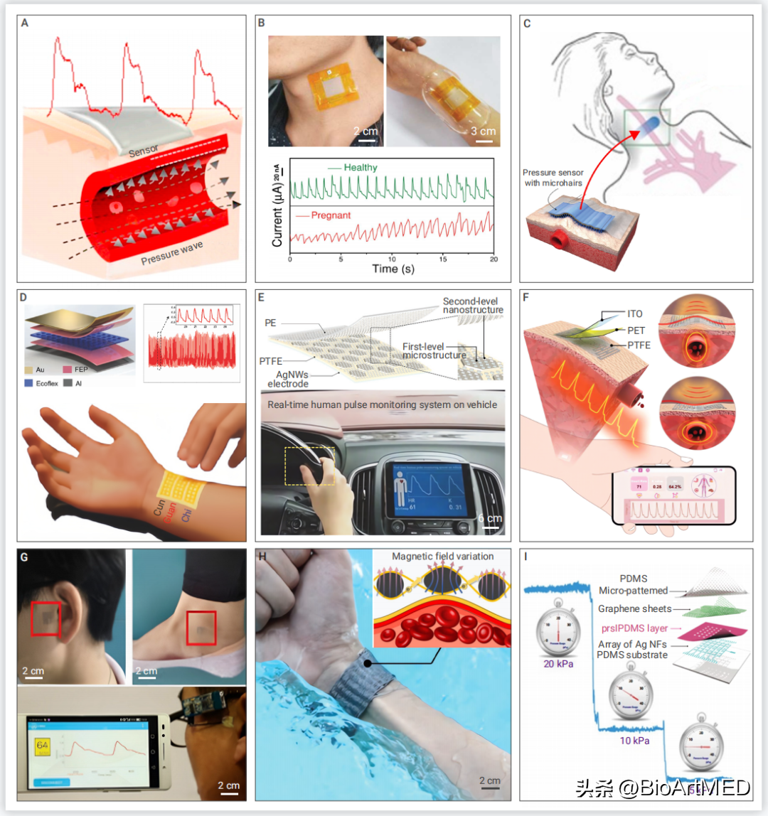 图2. 柔性压力/应变传感器测量脉搏和血压