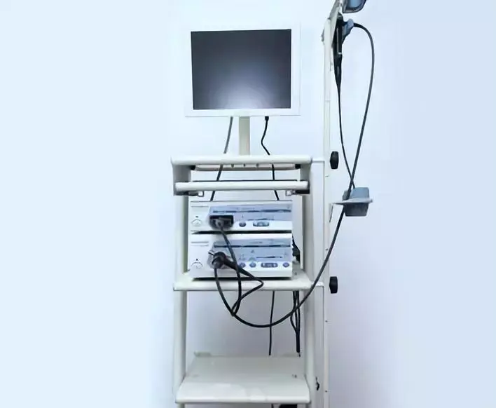 图像处理中心又称电子内镜主机, 处理内镜传来的光电信号并再现于监视器屏幕上。处理中心具有光平均/高峰值切换功能,让图像任何部位的亮度都处于最佳状态;另外,其还有白色自动控制功能,保证图像色彩不失真。电子内镜有画面冻结功能及动态、静态互换功能,设置的第二图像在主画面冻结后,在其下方一角显示动态画面,便于对局部病变进行对比观察。记录系统将内镜图像通过处理记录到硬盘上,并可经打印机输出。显示器用于显示全部信息,目前常用的有阴极射线管 (CRT)、液晶(LCD)、等离子(PDP)显示器等[2]。