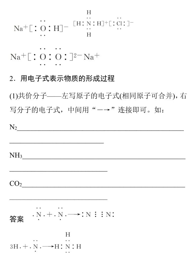 3. 电子式只能用示表示由主族元素形成的物质,不能表示由过渡元素形成的物质。