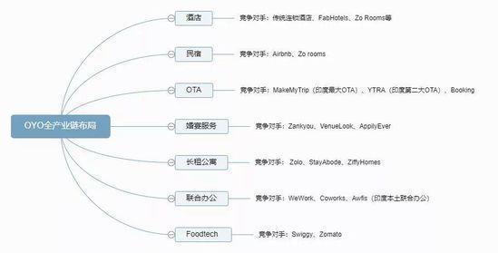在完成高中低全产品线布局后,OYO背后还藏着巨大的秘密。它还进入了民宿、OTA、联合办公、长租公寓、婚宴服务、外卖等领域。