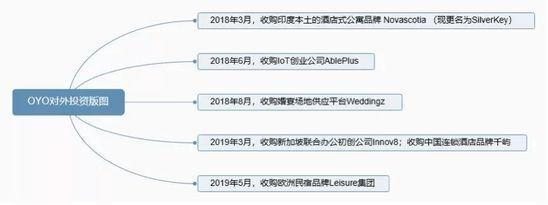支持OYO全球野心的除了hotel业务带来的18亿美元营收外,还有来自资本的加持。截至目前,OYO累计融资金额超过17亿美金,其中,在2018年下半年获得了软银10亿美元的巨额融资。巨额融资之后,OYO开启了全球兼并之旅。